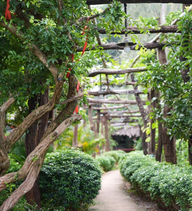 “Vườn” tượng trưng cho thiên nhiên trong lành, cây cối xanh tươi, dòng suối mát, tạo nên không gian ăn uống thoáng đãng, gần gũi với đất trời.